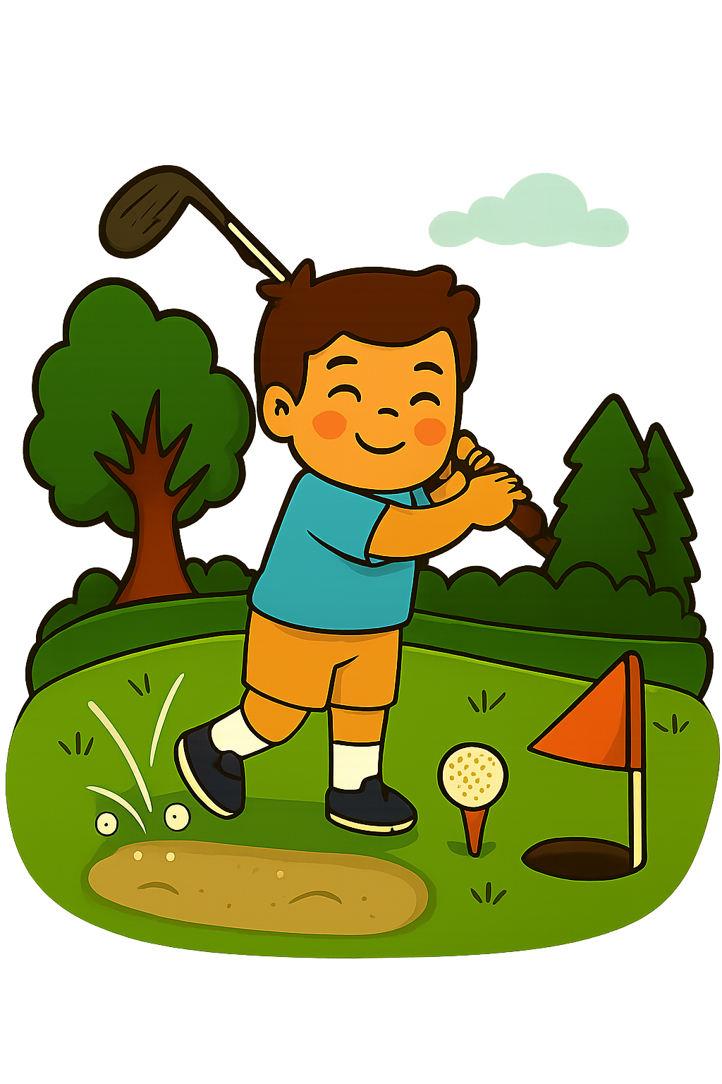 برای بازی گلف، استفاده از تجهیزات استاندارد و رعایت اصول ایمنی بسیار مهم است. بازیکنان باید چوب گلف، توپ مخصوص و لباس مناسب داشته باشند. کفشهای گلف طوری طراحی شدهاند که در زمین چمن لغزش نداشته باشند و تعادل بازیکن را حفظ کنند. همچنین باید در هنگام تاب دادن چوب دقت کرد تا کسی در نزدیکی نباشد و آسیبی نبیند. رعایت فاصله ایمن، استفاده از چوبهای مناسب با توان بازیکن و آگاهی از شرایط زمین از موارد ضروری ایمنی در گلف به شمار میآیند.